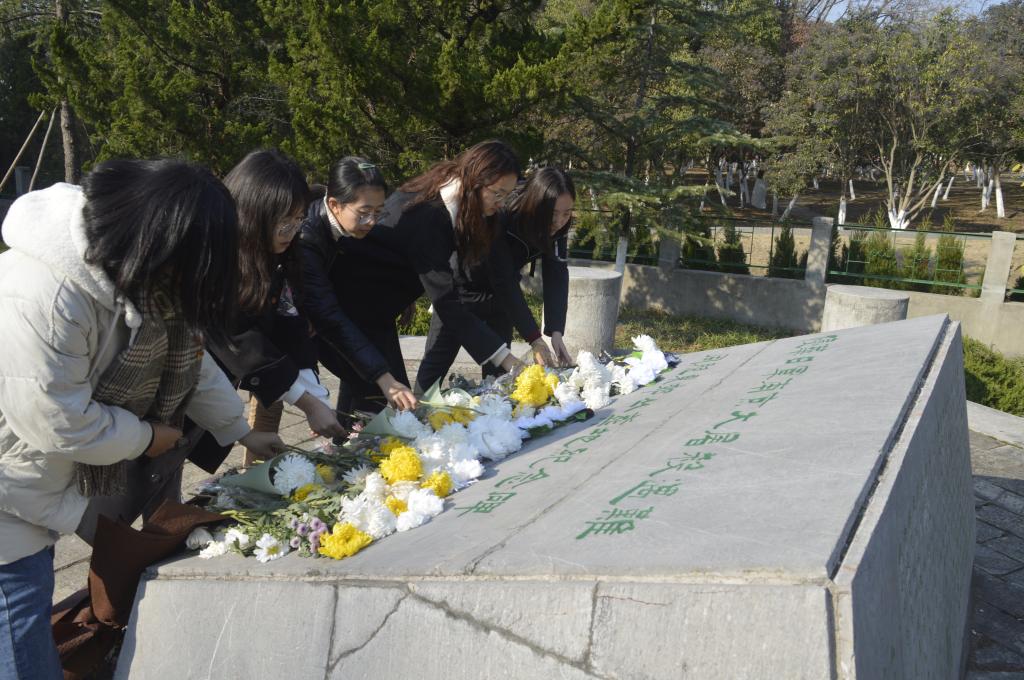 工商管理学院学生在纪念碑前鞠躬献花