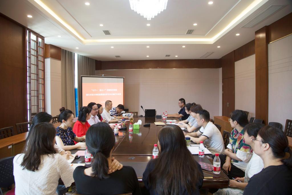 艺术设计学院党委在仙林校区美术馆一楼会议室开展了“七个一,迎七一”专题党日活动。重温一次入党誓词,在庄严宣誓中,重温入党时的誓言;重读一次《中国共产党章程》,校艺术中心主任段伟伟重读了一次党章,全体党员再次明确了党员的权利与义务,明白了党员需要肩负的责任与使命;同唱一首爱党歌曲,在高亢激昂的奏曲下,学院党员放声高歌《没有共产党就没有新中国》,用歌声为党的生日送上祝福;同诵一首颂党诗篇,学院党委书记刘浩与学院教工第一支部书记张昕欣一起深情朗诵刘浩书记原创诗歌《党旗颂》;同上一次专题党课,党委组织部干部科科长、校“优秀党务工作者"马健,为学院党员上了一次专题党课,他说,基层党员要恪尽职守,关爱学生,牢固树立党员的责任与担当意识;开展一次专题学习研讨,刘浩书记、学院党委副书记吴丹、校艺术教育中心副主任王钱美分别宣读了学校党建文件,与会党员观看了习近平总书记关于防疫抗疫的演讲视频并展开了学习交流;开展一句话承诺,学院党员在党旗前就工作、理论学习以及党性修养等方面作出庄严承诺。