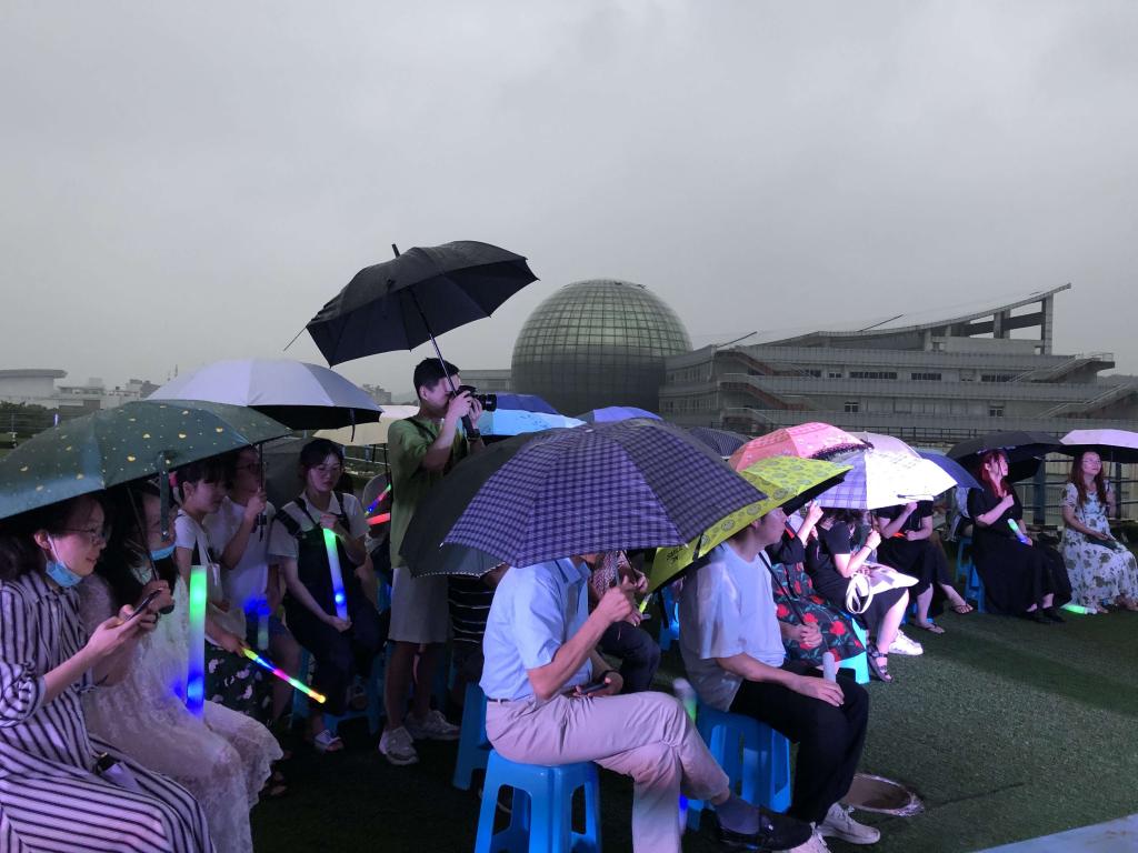 7月2日,原本沉寂的校园因为毕业生返校而增添了不少生机。外国语学院的草坪上,一位嗓音低沉浑厚的青年歌唱家正用俄语演绎着一首名曲——《闪耀,闪耀,我的星辰》。毕业生们打着伞在雨中倾听,不时挥舞着手中的荧光棒。这位青年表演艺术家名叫龚金龙,是俄罗斯音乐学院毕业的博士,曾荣获俄罗斯第五届国际声乐大赛第一名、圣彼得堡国际音乐大赛第一名,是学院毕业音乐会的特邀嘉宾。