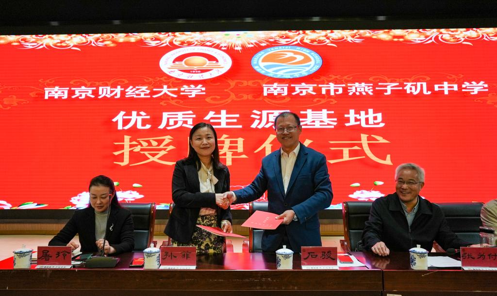 随后,孙菲副处长和石骏校长签署了《南京财经大学与南京市燕子矶中学优质生源基地建设协议书》,张为付副校长为南京市燕子矶中学优质生源基地授牌。