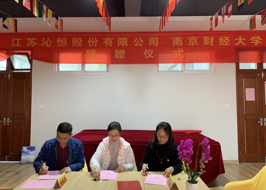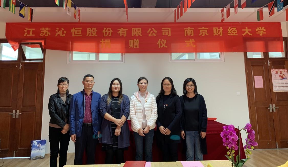 11月18日,外国语学院与江苏沁恒股份有限公司校企合作暨捐赠仪式在仙林校区德正楼304会议室举行。江苏沁恒股份有限公司党支部书记胡娟华、人事部经理顾春涛,我校对外联络处副处长裴银伟、外国语学院党委书记李骏参加捐赠仪式。仪式由外国语学院党委副书记刘英华主持。