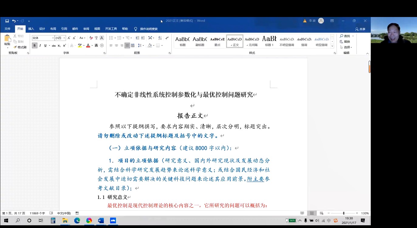 1月17日晚,应应用数学学院邀请,东南大学数学学院教授曹进德受邀就课题申报的相关事项作讲解并对申报项目书进行一对一评审。应用数学学院2021两基申报的老师参加评审交流会。交流会由应用数学学院院长王宏勇主持。