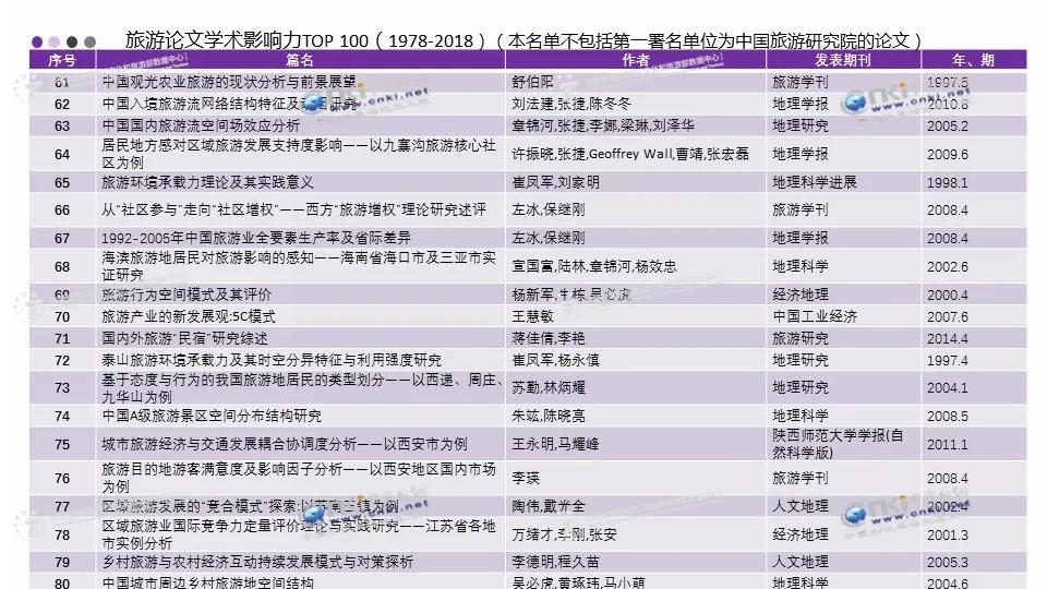 本次遴选通过定量定性结合的方式,科学、客观地评选出从1978年至2018年内,在旅游专业学科内最具影响力的学术论文和作者。我校万绪才教授以第一作者身份发表的《区域旅游业国际竞争力定量评价理论与实践研究——江苏省各地实施例分析》入围“旅游论文学术影响力Top100”,同时本人名列“旅游论文作者学术影响力Top100”第46名,钟士恩副教授名列第86名。