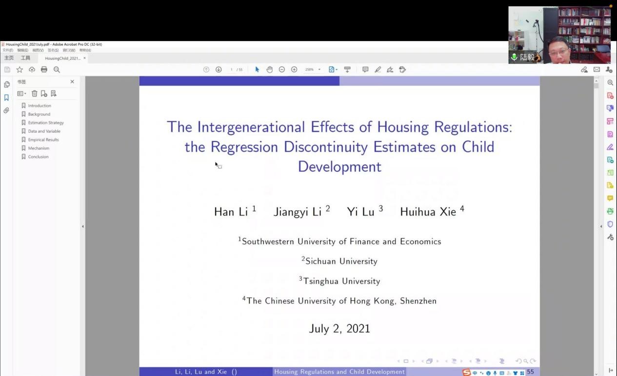 7月2日晚,应财政与税务学院、公共财政研究中心、中国财税治理研究院邀请,清华大学经济管理学院经济学系主任、博士生导师陆毅为我校师生作题为“The Intergenerational Effects of Housing Regulations: the Regression Discontinuity Estimates on Child Development”的线上学术报告。讲座由财政与税务学院院长、公共财政研究中心主任朱军主持,财税学院部分师生参加了此次讲座。