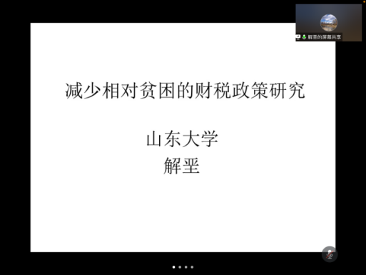 10月14日,应财政与税务学院、公共财政研究中心和中国财税治理研究院的邀请,山东大学经济学院博士生导师解垩教授通过腾讯会议为学院师生作了题为“国家基金项目申报经验交流:以‘减少相对贫困的财税政策研究’为例”的线上学术讲座。讲座由财政与税务学院院长、公共财政研究中心主任朱军教授主持。学院中青年教师和硕士研究生聆听讲座。