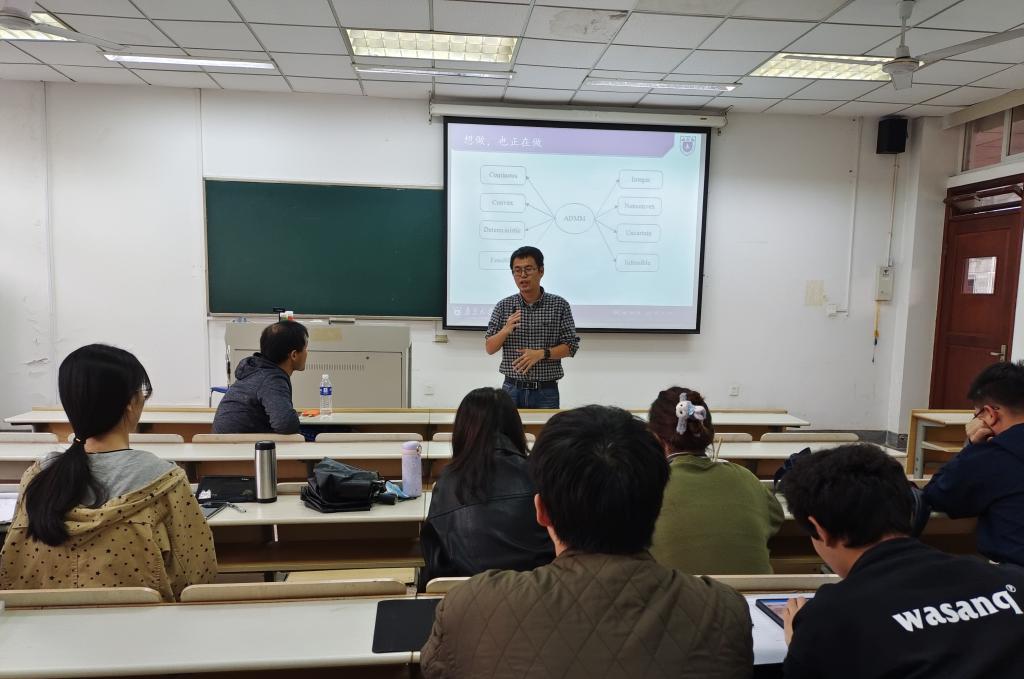 11月2日下午,应应用数学学院邀请,国家优秀青年基金项目获得者、南京大学工程管理学院陈彩华教授作了题为“Some Recent Developments of ADMM: New Theory and Applications”的学术讲座。应用数学学院部分教师、全体硕士研究生和部分本科生参加了讲座。