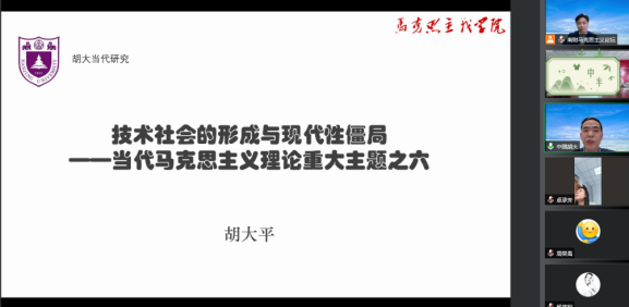 5月10日下午,应马克思主义学院邀请,南京大学马克思主义学院院长胡大平教授应邀在线作题为“技术社会的形成与现代性僵局——当代马克思主义理论重大主题”的学术报告。马克思主义学院部分教师及全体研究生以线上线下形式参加报告会。会议由马克思主义学院院长梅景辉教授主持。