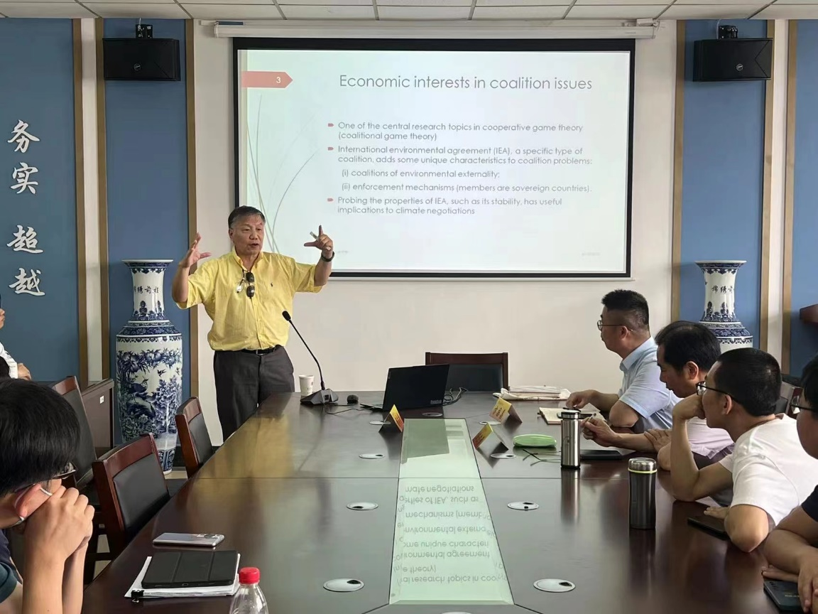 6月15日下午,应应用数学学院邀请,美国纽约州立大学杨自力教授在仙林校区德业楼508会议室作了题为“Constructing Stable Climate Coalitions Based on the Lindahl Principle—The Findings from the RICE2020 Model”的学术讲座。讲座由应用数学学院副院长(主持工作)方国昌教授主持,学院学科带头人王宏勇、副院长孙成峰及部分师生参加讲座。