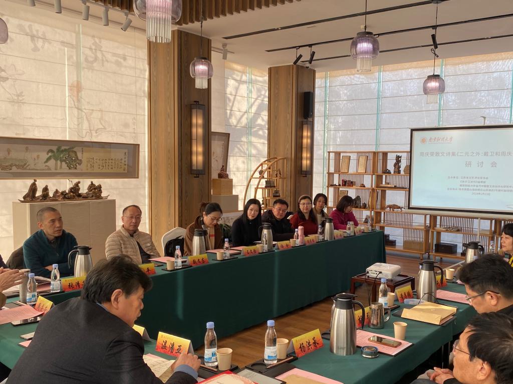 1月12至14日,周庆荣散文诗集《二元之外》作品研讨会在南京栖霞山涵田栖云山房酒店举行。著名散文诗人、中国诗歌学会常务理事、散文诗刊《星星》名誉主编周庆荣,中国当代文学研究会会长、北京师范大学教授张清华,江苏省文艺评论家协会主席汪政,江苏省作家协会副主席、《扬子江诗刊》主编、鲁迅文学奖获得者胡弦,江苏省文艺评论家协会副主席、南京师范大学教授、鲁迅文学奖获得者何平,南京师范大学教授杨洪承,中央民族大学教授敬文东,解放军艺术学院文艺研究所研究员黄恩鹏,南京大学教授傅元峰,南京师范大学教授王文胜,我校外国语学院教授孙冬,中国散文诗工作委员会副主任语伞,安庆师范大学教授陈宗俊,安徽农业大学博士司念等来自全国各地的专家和散文诗人参加研讨会。研究中心执行主任、新闻学院副院长刘霞云及研究中心成员代表等参加会议。江苏省文艺评论家协会副主席、我校教授温潘亚代表研究中心致辞。