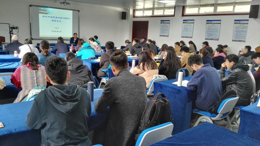 李俊清教授于我校仙林校区德济楼502实验室作了题为“当代中国的民族宗教问题与国家安全”的学术报告。报告由公共管理学院党委书记胡永远主持。李俊清教授分别用文字、照片、文物等丰富的历史质料,讲述了中国的民族问题、宗教问题、国家安全问题,归纳了三个问题的一致性、共生性,提出了“常态化、长期化、法制化”等解决问题的思路和方法。