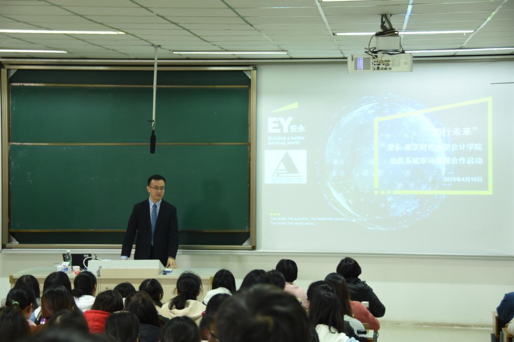 4月10日,“知行未来”安永-南京财经大学2019年上半年会计学院信息科技审计系列讲座在我校仙林校区正式启动。本次系列讲座由会计学院、安永(中国)企业咨询有限公司及江苏省会计教育协同发展中心主办。安永大中华区风险咨询服务部合伙人顾卿华、安永中国风险咨询服务高级经理陆锡玳、会计教育专家委员会秘书长杨政、江苏省会计教育协同发展中心单位相关教师,会计学院部分老师以及审计专业本科生、研究生共计200余人参加了讲座启动仪式。启动仪式由会计学院副院长沈永建主持。