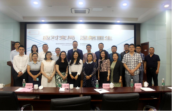 6月11日上午,“应对变局、涅槃重生”讲座在我校现代服务业科技园报告厅举办。此次讲座由江苏敏捷创新经济管理研究院主办,南京财经大学科技园、南京市鼓楼区创聚汇创新创业服务联盟共同承办。中国管理科学学会副会长兼秘书长张晓东、南京财经大学科技园管理办公室主任卜金涛、荷兰贸易促进委员会南京代表处首席代表Richard、南京市鼓楼区委组织部人才科副科长向张飏、荷兰商学院江苏校友会秘书长苏朝蓉、中国管理科学学会学前教育专委会秘书长唐双杰以及江苏敏捷创新经济管理研究院副院长吴霞参加讲座。
