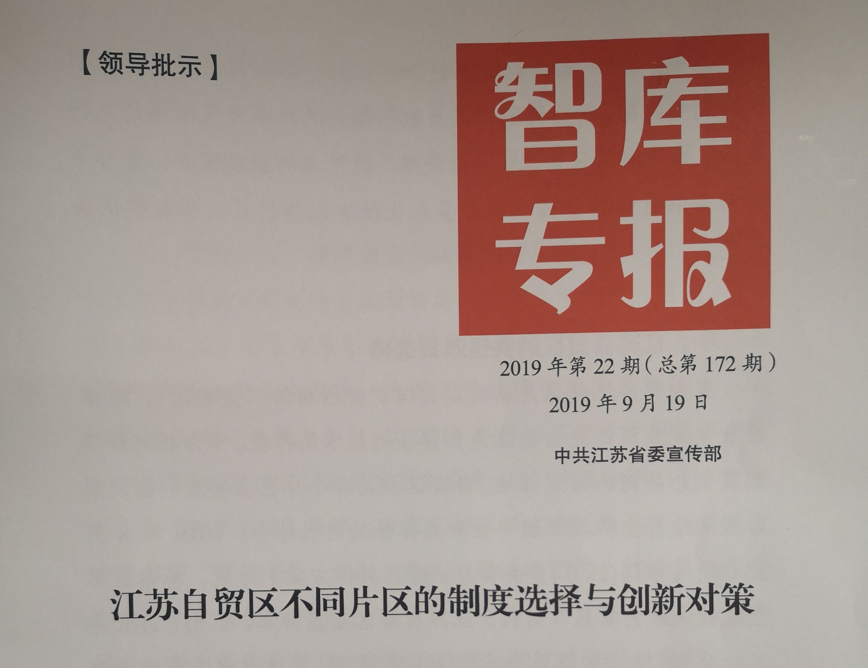 近日,我校智库决策咨询成果《江苏自贸区不同片区的制度选择与创新对策》被省委宣传部《智库专报》录用。该报告由江苏省重点培育智库、现代服务业智库主要研究人员共同完成,刊发于2019年第22期,并上报至有关领导参阅。