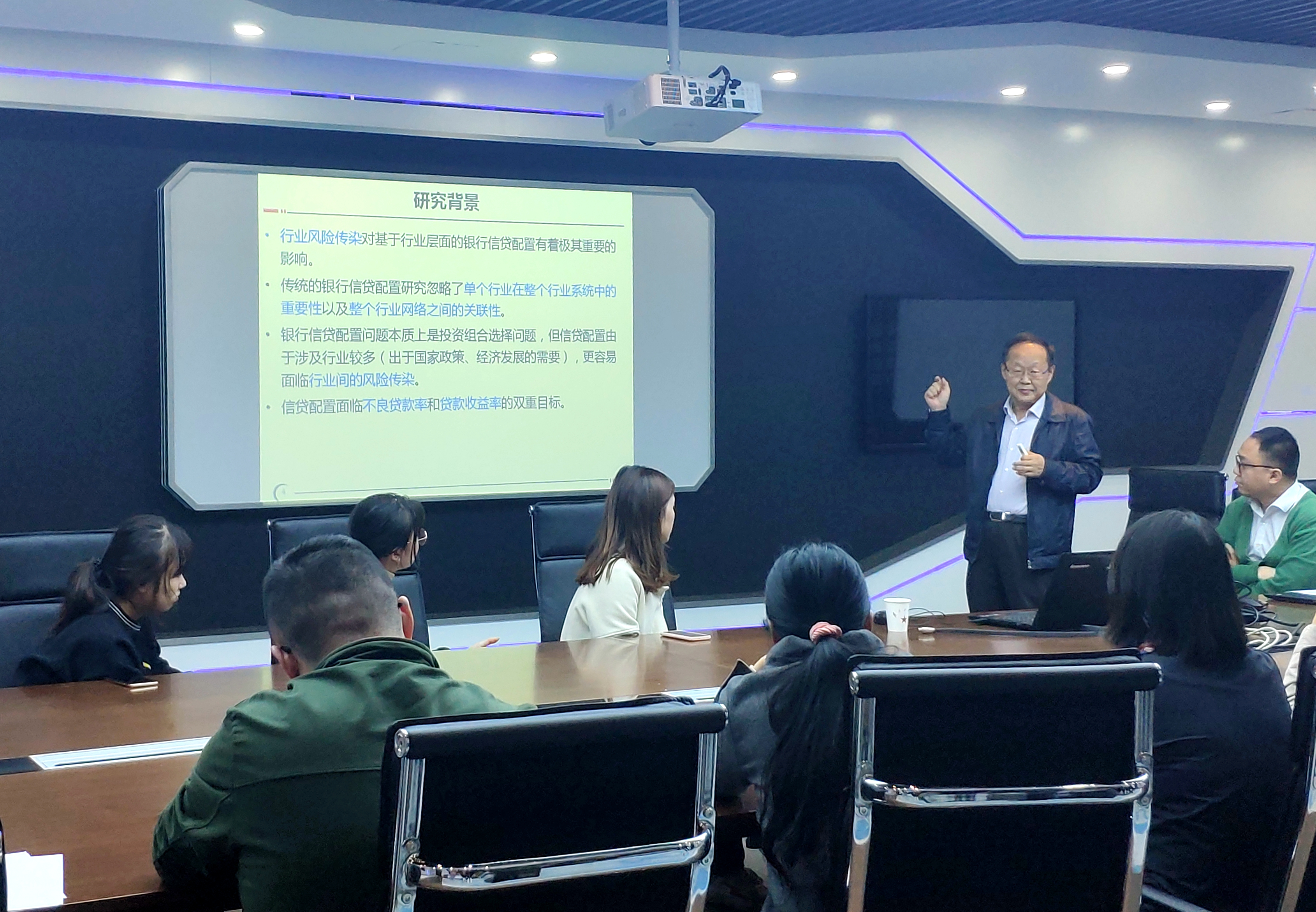 讲座伊始,李仲飞教授从信贷配置效率影响国家经济运行质量入手,系统阐述了传统的银行信贷配置研究不能够解决银行信贷配置是集中化还是多元化更优的问题。李仲飞教授介绍了采用复杂网络的方法来研究银行视角下的基于行业层面的银行信贷资金配置问题,提出均值约束条件下的Min-C(最小聚类系数)模型,分析行业的风险传染。最后,李仲飞教授对提出的模型进行了实证分析,其实证结果优于传统的配置模型和实践中商业银行的表现。提出的信贷配置的集中化度量指标C-I与-HHI,有效地解决了银行信贷配置是集中化还是多元化更优的争论。讲座后,李仲飞教授与在座师生围绕主题展开了深入探讨与交流。