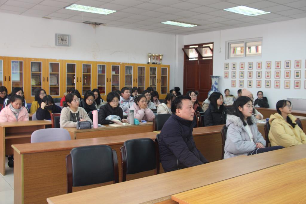 12月3日下午,应外国语学院邀请,河海大学外国语学院院长蔡斌在仙林校区德正楼308会议室作了题为“从厄普代克小说审视美国当代中产阶级心路历程—以《兔子归来》为例”的讲座。外国语学院院长孙勇彬及学院部分2019级本科生参加了讲座。