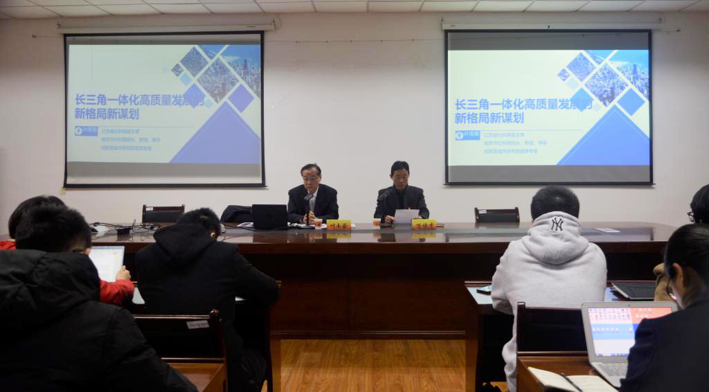 12月17日下午,应工商管理学院邀请,江苏省哲学社会科学界联合会副主席叶南客在我校仙林校区德济楼408会议室作了题为“长三角一体化高质量发展的新格局新谋划”的讲座。工商管理学院2017级部分学生及部分研究生参加讲座,讲座由工商管理学院党委书记万绪才主持。
