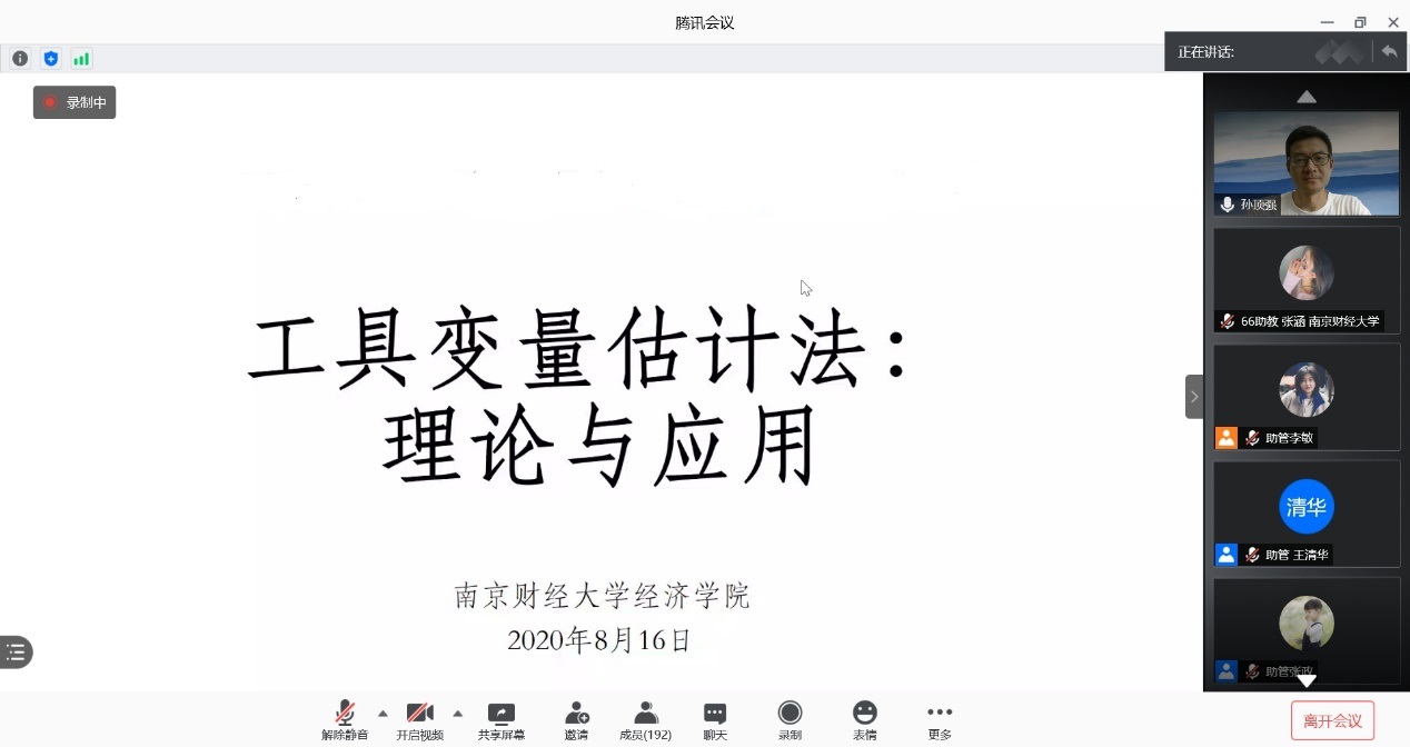 8月16日下午,应经济学院邀请,南京农业大学孙顶强教授在线(腾讯会议)作了题为“工具变量估计法:理论与应用”的专题讲座。讲座由经济学院教授李刚主持,学院部分青年教师及研究生聆听了讲座。