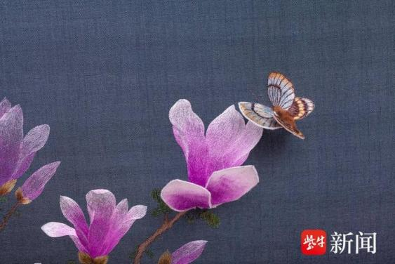 初看之下,这幅作品似乎毫不起眼,它描绘了几朵玉兰花和三只小蝴蝶,似乎是一个常见的主题。然而,当你轻轻用手触摸玉兰花的树干时,一个不可思议的事情就会发生——玉兰花的花瓣会缓缓地展开,仿佛在悄悄地绽放,而蝴蝶也会轻轻地开始扇动翅膀。这一神奇的效果得益于清华大学未来实验室所开发的前沿材料记忆金属。张雪与清华大学未来实验室的团队合作,将科技与非遗相结合,首次实现了动态苏绣的效果。