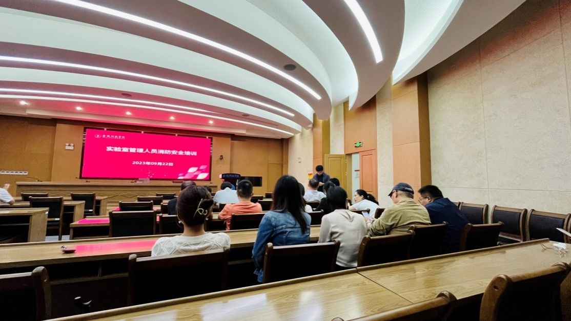 培训主要学习和解读了教育部颁布的教育行业标准《高等学校实验室消防安全管理规范》、观看了全国十二所高校实验室消防安全典型案例。培训过程采用宣讲结合现场问答模式,指导培训人员学习领会《规范》全文,查找现场安全隐患,对灭火器等消防器材进行灭火使用演练。