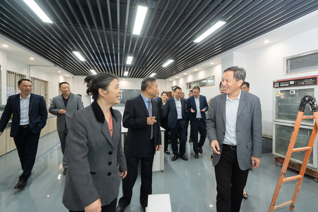 武焕陵一行在丁鹏的陪同下,还参观了我院相关实验室,武焕陵对母校取得的发展成绩及展现的发展态势表示由衷的高兴。他表示,南京市公共工程建设中心将进一步深化与金科院在毕业生实习就业、双师型队伍建设、学科专业建设、科技研发等方面的全方位合作,共同为南京创新名城建设服务。