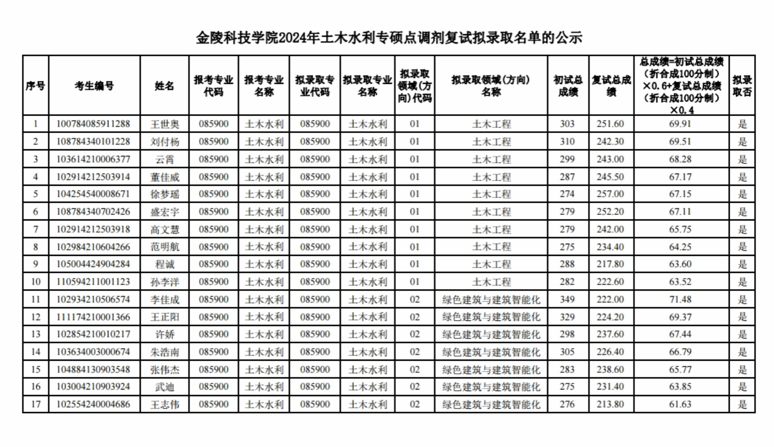 附:云顶集团2024年土木水利专硕点调剂复试拟录取名单的公示